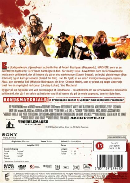 The highly skilled federale Machete (Trejo) is hired by some unsavory types to assassinate a senator. But just as he's about to take the shot, he notices someone aiming at him and realizes he's been set up. He barely survives the sniper's bullet, and is soon out for revenge on his former employers, with the reluctant assistance of his old friend Padre (Marin), who has become a priest and taken a vow of nonviolence, and a few other allies. If you hire him to take out the bad guys, make sure the bad guys aren't you!