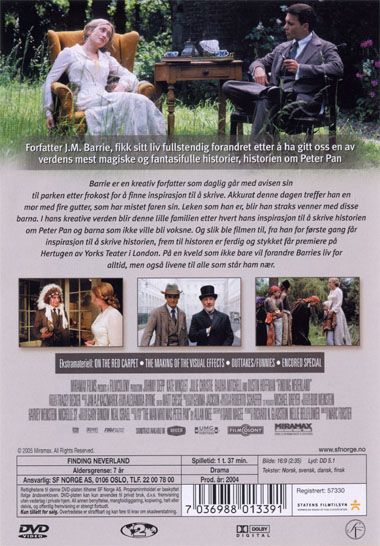 "Finding Neverland" is an emotive biography of James M. Barrie, the author of the children's books "Peter Pan" and "Peter Pan in Kensington Gardens." The movie gives insight into Barrie's relationship with a dying woman and her three children, who Barrie becomes rather attached to. The relationship is not really a romantic one, but rather a closeness between a friend and family. The resulting inspiration to Barrie's career as a playwright is astounding. This new play might be enough to resurrect the failing Barrie's career. Despite much criticism and doubt over his newest venture, the imaginative new play brings nostalgia about childhood.