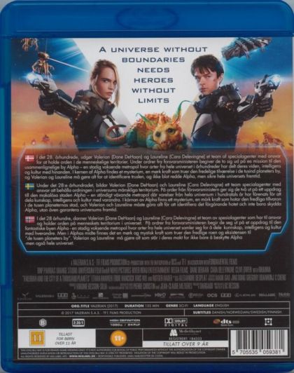 In the 28th century, Valerian and Laureline are special operatives charged with keeping order throughout the human territories. On assignment from the Minister of Defense, the two undertake a mission to Alpha, an ever-expanding metropolis where species from across the universe have converged over centuries to share knowledge, intelligence, and cultures. At the center of Alpha is a mysterious dark force which threatens the peaceful existence of the City of a Thousand Planets, and Valerian and Laureline must race to identify the menace and safeguard not just Alpha, but the future of the universe.