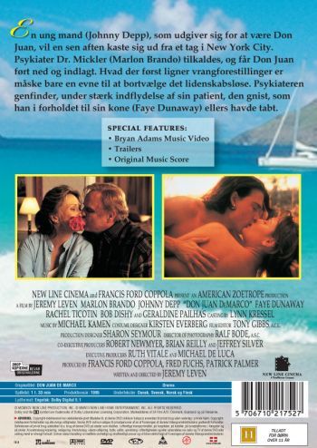 Dr. Jack Mickler (Marlon Brando), a disillusioned yet respected psychiatrist on the verge of retirement, is called in on the case of John DeMarco (Johnny Depp), a young man who, rebuffed in his affections by the centerfold model of his dreams, has attempted suicide. But when he sits down to talk to his patient, DeMarco confides to him that he is not John DeMarco at all, but really Don Juan, the world’s greatest lover, and that his centerfold obsession is, in actuality, his long lost love who’d fled from him after the admission of his numerous conquests and who was now punishing him by appearing in her scandalous photos. DeMarco fills Mickler in on the story of his real life, of the young lovers who were his parents, of his father killed in a duel, of his mother who had retreated to a convent in her sadness, and of his own adventures finding his way in the world. His tales reawaken the magic in the lives of the hospital staff, including that of Dr. Mickler, whose neglected marriage to wife, Marilyn (Faye Dunaway), becomes infused with a new passion and romance.