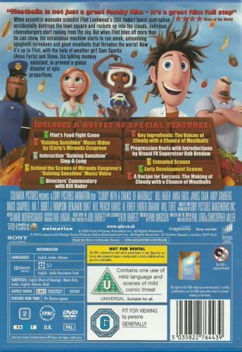 nventor named Flint Lockwood (Bill Hader) wants to create something to improve the lives of the people in his town. He creates a machine that goes up into the clouds and turns water into food that falls from the sky upon request, but it soon goes out of control when the food becomes too big. Sam Sparks(Anna Faris) is the local weathergirl who covers the story of food falling from the sky. She is smarter than she lets on and she ends up helping Flint.