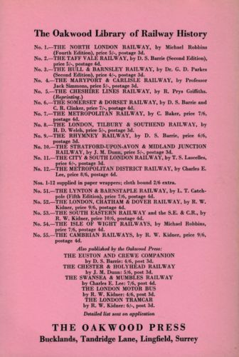 The "District" was a noteworthy railway, the second underground railway in London. This through yet accessible history details the full history of the company that formed the nucleus of present-day London Transport, following its expansion over the years until World War II. Covers its persistent battles with the Metropolitan, the feud between Sir Edward Watkin and James Staats Forbes, the activity of American financier Charles Tyson Yerkes, the introduction of the third and fourth rail 600 volt system of electric traction, and of automatic signalling controlled by track circuits on electric railways. Illustrated throughout with black and white photos. With chronology, list of stations, list of executives, and several maps. 64 pages with index.