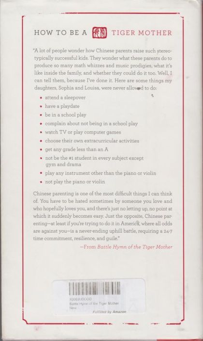 An awe-inspiring, often hilarious, and unerringly honest story of one mother's exercise in extreme parenting, revealing the rewards-and the costs-of raising her children the Chinese way. All decent parents want to do what's best for their children. What Battle Hymn of the Tiger Mother reveals is that the Chinese just have a totally different idea of how to do that. Western parents try to respect their children's individuality, encouraging them to pursue their true passions and providing a nurturing environment. The Chinese believe that the best way to protect your children is by preparing them for the future and arming them with skills, strong work habits, and inner confidence. Battle Hymn of the Tiger Mother chronicles Chua's iron-willed decision to raise her daughters, Sophia and Lulu, her way-the Chinese way-and the remarkable results her choice inspires. Here are some things Amy Chua would never allow her daughters to do: • have a playdate • be in a school play • complain about not being in a school play • not be the #1 student in every subject except gym and drama • play any instrument other than the piano or violin • not play the piano or violin The truth is Lulu and Sophia would never have had time for a playdate. They were too busy practicing their instruments (two to three hours a day and double sessions on the weekend) and perfecting their Mandarin. Of course no one is perfect, including Chua herself. Witness this scene: "According to Sophia, here are three things I actually said to her at the piano as I supervised her practicing: 1. Oh my God, you're just getting worse and worse. 2. I'm going to count to three, then I want musicality. 3. If the next time's not PERFECT, I'm going to take all your stuffed animals and burn them!" But Chua demands as much of herself as she does of her daughters. And in her sacrifices-the exacting attention spent studying her daughters' performances, the office hours lost shuttling the girls to lessons-the depth of her love for her children becomes clear. Battle Hymn of the Tiger Mother is an eye-opening exploration of the differences in Eastern and Western parenting- and the lessons parents and children everywhere teach one another.