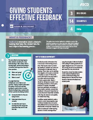 Feedback is one of the most important variables affecting student learning. Learn how and when to provide effective feedback that helps students see where they are going, where they are now, and where they should go next in their learning.