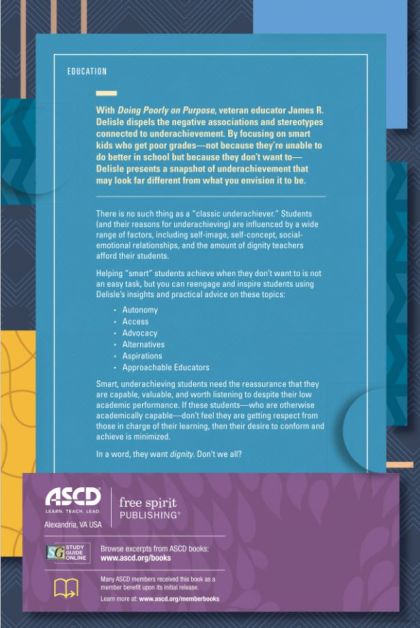 With Doing Poorly on Purpose, veteran educator James Delisle dispels the negative associations and stereotypes connected to underachievement. By focusing on smart kids who get poor grades—not because they're unable to do better in school but because they don't want to—Delisle presents a snapshot of underachievement that may look far different from what you envision it to be.