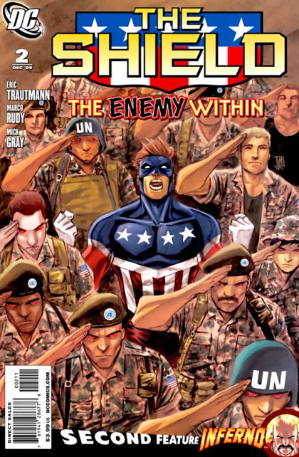 Written by Eric Trautmann; co-feature written by Brandon Jerwa Art by Marco Rudy & Mick Gray; co-feature art by Greg Scott Cover by Francis Manapul The Shield's mission deepens as he struggles to free himself from the mind-washed hordes. Unfortunately, someone else is on the same mission despite no official sanction. Can The Shield control the situation - or will he be forced to scrub out, thanks to Magog? Plus, Inferno takes on Black Canary on her own turf! Will she catch him before he's even started to run? On sale October 14 o 40 pg, FC, $3.99 US