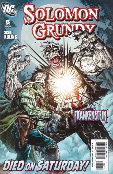 Written by Scott Kolins Art and cover by Scott Kolins Died on a Saturday! Death has come to Slaughter Swamp and his name is Frankenstein! But can Bizarro save Grundy before it's over? Will the Green Lantern interfere? And can Cyrus find his killer before the Blackest Night? The horror is coming to an end that Solomon Grundy fans will be talking about for years! On sale August 5 ? 6 of 7 ? 32 pg, FC, $2.99 US