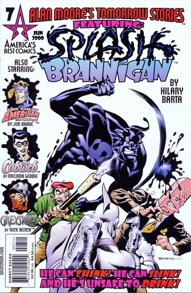 WRITTEN BY ALAN MOORE; ART BY HILLARY BARTA, RICK VEITCH, JIM BAIKIE, AND MELINDA GEBBIE; COVER BY BARTA In stores March 1. Alan Moore's newest creation takes center stage! He's the ooze that can't lose! After his explosively messy debut last issue, Hillary Barta's indelible avenger, Splash Brannigan, is this issue's lead feature in a tale in which our viscous vigilante decides to take the plunge (literally) into the world of art, with mind-boggling consequences! And for those of you who need more than a licorice-slick liquid lawman, Rick Veitch's Greyshirt mystifies, Jim Baikie's First American maddens, and Melinda Gebbie's Cobweb slips into something more comfortable! FC, 32 PG. Cover price $2.95.