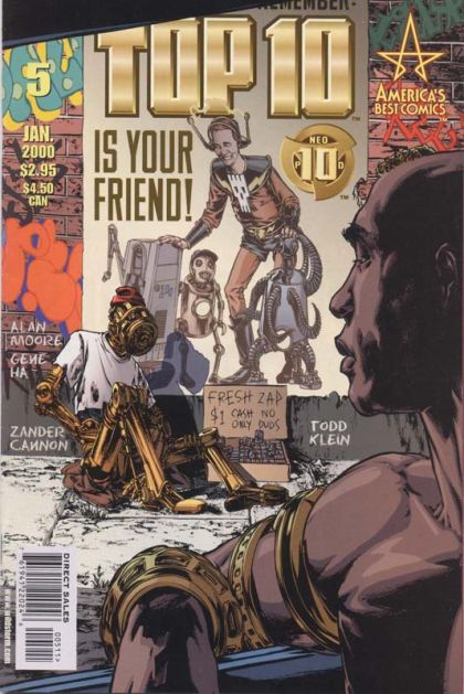 WRITTEN BY ALAN MOORE; ART AND COVER BY GENE HA AND ZANDER CANNON In stores November 24. Under the streets of Neopolis, there's a manhunt going on, except that the quarry isn't anything close to a man. The trail of the Libra killer grows warmer as Sergeant Kemlo Caesar finds himself responsible for the safety of a potential victim and starts to wish for the dull routine and security of his desk job back at the station. Cyber-Cowboy Duane "The Dust Devil" Bodine and his spark-spitting partner Shock Head Peter try to adjust to an unlikely alliance with North Hockney mega-madam Large Marge, and there's clearly something bothering Jeff Smax. Join the men, women, dogs and mutants of Neopolis' Finest as things take a decided turn for the dark and creepy around Precinct Ten. FC, 32 PG." Cover price $2.95.