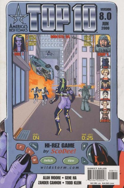 WRITTEN BY ALAN MOORE; ART AND COVER BY GENE HA AND ZANDER CANNON Alan Moore script. In stores March 8. Duane's mom is still having problems with her Ultramice, so Duane's still having problems with his mom. The Libra killer turns out to have some friends in high places. Meanwhile, Detectives Jackson and Corbeau get closer to the killer of Stephan Graczik. It's a journey that takes King Peacock to the world at the hub of the network of parallel precincts of which Top Ten is only a part; the mind-blowing meta-metropolis known as Grand Central. FC, 32 PG. Cover price $2.95.