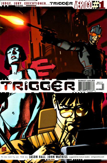 Welcome to the world of tomorrow, where anyone could be a Trigger...even you.In the not too distant future, 87% of America's corporations have been consolidated into one government-sanctioned corporate entity: Ethicorp. The result has allowed our country's citizens to live safely and securely in a clean, terror-free, and productive environment. Society is dosed on nonstop Vid feeds, feel-good drugs, clean sex and low crime. And most people happily embrace Ethicorp's corporate motto: "We Get the Bad Out!" This is the world of TRIGGER, an all-new ongoing futuristic thriller written by Jason Hall (BEWARE THE CREEPER) with dazzling art by John Watkiss (SANDMAN MYSTERY THEATRE) that captures the look and feel of Blade Runner, Minority Report and Sky Captain and the World of Tomorrow!To keep society so "shiny," Ethicorp secretly controls legions of high-tech killers — known on the street as "Triggers" — that act as one-man (or woman) judge, jury and executioner whenever Ethicorp sees something "bad." But be careful, because "bad," like beauty, is often in the eye of the beholder. Don't miss this thrilling new series, brought to you by the fine folks at Ethicorp and VERTIGO.