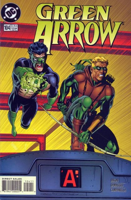 Cover pencils by Rodolfo Demaggio, inks by Robert Campanella. Bad Blood starring Green Arrow [Connor Hawke] and Green Lantern [Kyle Rayner], script by Chuck Dixon, pencils by Rodolfo Damaggio, inks by Robert Campanella; Green Arrow teams with Green Lantern--Together again for the first time; Connor goes looking for his mom in New York and crosses paths with the Emerald Ringwielder himself. 36 pgs. $2.25. Cover price $2.25.