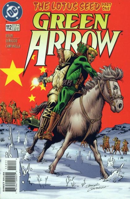 Cover pencils by Rodolfo Demaggio, inks by Robert Campanella. The Lotus Seed Part One: Queen of the Shadows starring Green Arrow [Connor Hawke], Eddie Fyers, Oliver Queen [Green Arrow] (flashback), and Lady Ren (first appearance), script by Chuck Dixon, pencils by Rodolfo Damaggio, inks by Robert Campanella; Connor and Eddie go on a quest for the gardens of W'eng Chun. 36 pgs. $2.25. Cover price $2.25.