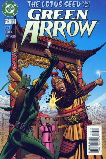 Cover pencils by Rodolfo Demaggio, inks by Robert Campanella. The Sundered Souls starring Green Arrow [Connor Hawke] and Eddie Fyers, script by Chuck Dixon, pencils by William Rosado, inks by Robert Campanella; part two of The Lotus Seed. 36 pgs. $2.25. Cover price $2.25.