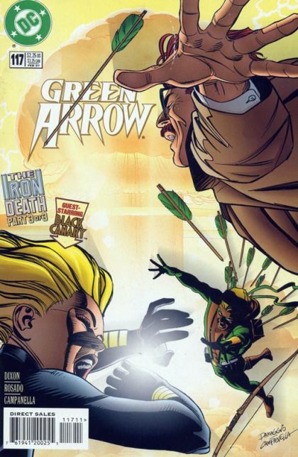 "The Iron Death," Part 3 of 3. Green Arrow, Black Canary and Eddie Fyers must stop a Japanese gangster from utilizing a nuclear device to destroy Japanese and U.S. relations, not to mention Osaka, Japan! Written by Chuck Dixon, with art by William Rosado and Dick Giordano. Cover by Rodolfo Damaggio and Robert Campanella. Mando Format. Cover price $2.25.