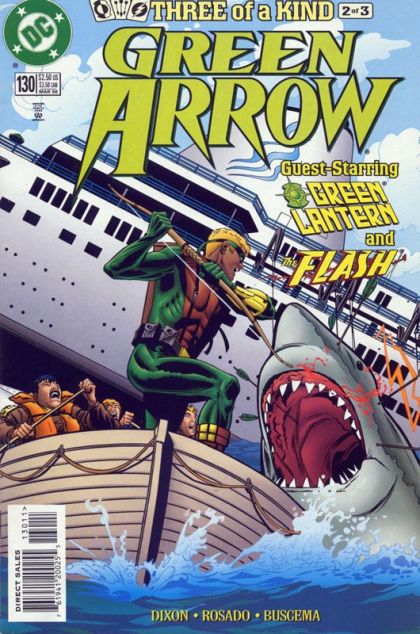 Death at the Top of the World starring Green Arrow [Connor Hawke], Green Lantern [Kyle Rayner], Flash [Wally West], Doctor Polaris [Neal Emerson], Heat Wave [Mick Rory], and Sonar II, script by Chuck Dixon, pencils by William Rosado, inks by Sal Buscema; Hatchet, Heat Wave and Sonar have taken over a cruise ship and are trying to revive Doctor Polaris. Story continued from Green Lantern #96 (March 1998) and story continues in Flash #135 (March 1998). 36 pgs. $2.50. Cover price $2.50.