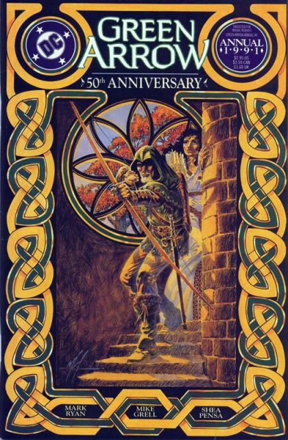 Ollie and Dinah in a time travel story? Strange, but true, as they find themselves back in the days of Robin Hood and Maid Marian, where they're called upon to save Sherwood Forest from a black alchemist who's out to poison and destroy those magical woods. Written by Mike Grell and Mark Ryan (star of Showtime television's 'Robin Hood' series), with art by Shea Anton Pensa. Painted cover by Grell. 68 pages. Suggested for Mature Readers. New Format. Cover price $2.95.