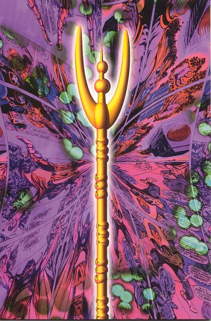 The Synchro-Staff which Hawkeye liberated from Immortus' stronghold in Limbo is actually the original Space Phantom. Now, outside of time and deprived of his connection to Limbo, he is powerless and easily captured by the Avengers who press him about Immortus. He tells them of a history behind the history of the Avengers... how Immortus has manipulated the team time and again to try to prevent them from going out into the universe, or to minimize Earth's influence on the timeline so that the Time Keepers would not destroy humanity to protect future time.