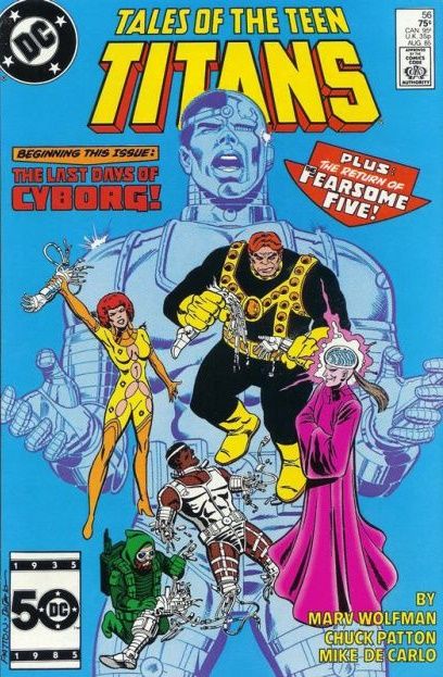 Meanwhile, Gar Logan meets the returning Joseph and Adeline Wilson at the aairport and apologizes for his earlier behavior toward Jericho, while Cyborg undergoes the operation tha will restore his normal appearance. When the members of the Fearsome Five stage a break-in at Tri-State Prison, they are resisted by Nightwing, Starfire, and Wonder Girl, the remaining unoccupied Titans. When Nightwing is injured, Starfire forcibly removes him from the encounter by depositing him on a rooftop. Despite the efforts of the two heroines, Psimon and his teammates are able to escape with another encapsulated super-powered prisoner, a woman named Jinx.