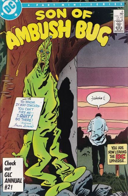 The charge is insanity, the suspect is Ambush Bug, and there's no hope for anybody who reads this final issue of the year's oddest excuse for a mini-series, provided by the decade's oddest excuse for a creative team! Written by oddballs Keith Giffen and Robert Loren Fleming, penciled by Giffen, inked by Bob Oksner. Cover by Giffen and Oksner. Cover price $0.75.