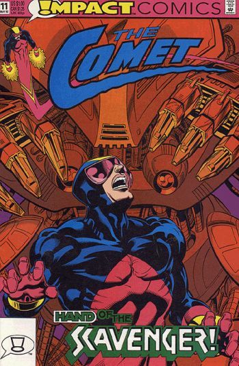 The Scavenger's on the hunt! The Comet is stalked by a brilliant eccentric who, thinking the Comet's powers are generated by his costume, devises diabolical traps to ensnare him.