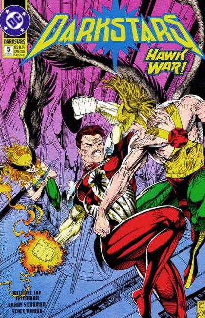 John Flint takes the initiative and goes after Pappas alone, but he hadn't counted on encountering Hawkman and Hawkwoman on the way in "Slaves and Other Prisoners." Continued next issue. Script by Michael Jan Friedman. Art & cover by Travis Charest & Scott Hanna. Cover price $1.75.