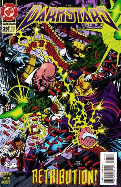 New Darkstar Donna Troy receives contradictory orders from the Darkstars command center - the result of Jeddigar's betrayal. Her predecessor Ferrin Colos has returned for vengeance, and when a dimensional portal sends both Colos and Jeddigar to their apparent deaths, former Green Lantern John Stewart steps in to take operational command of the Darkstars...as the Controllers had planned all along! Written by Michael Jan Friedman, with art by Mike Collins and Ken Branch. Cover by Mike Deodato. New Format. Cover price $1.95.
