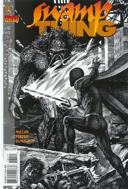'Atmospheres' concludes: Swamp Thing must decide whether to aid Nightmaster in defending Earth from a mystical invasion. But doing so may cost the Elemental his humanity forever...at the hands of the mysterious Parliament of Vapors. Written by Mark Millar, with art by Phil Hester and Kim DeMulder. Cover by John Totleben. Suggested for Mature Readers. FC, 32pg Cover price $2.25.
