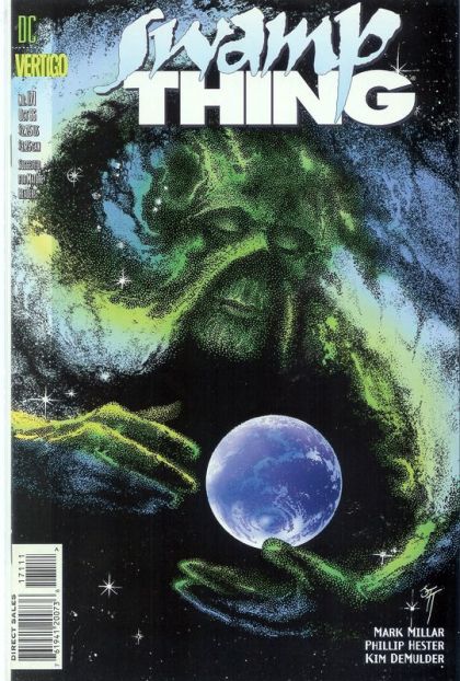 Trial by Fire: Part 6 of 6 - Written by Mark Millar. Art by Philip Hester and Kim DeMulder. Cover by John Totleben. An era comes to a close with the series finale! Swamp Thing reaches his ultimate evolution, bids farewell to a part of himself, and is beckoned by the final Parliament. 32 pages, full color. Mature Readers. Cover price $2.25.