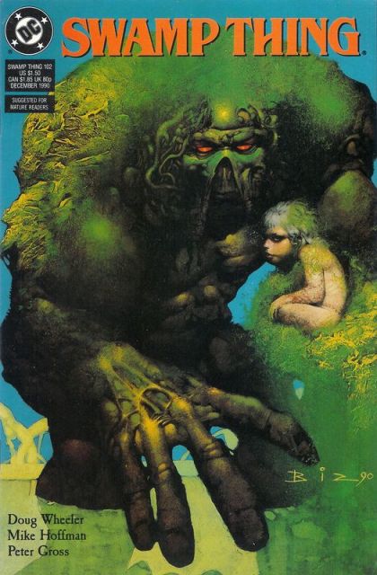 The epic conflict between the Green and the Grey is coming, but before Swamp Thing faces that, he and Abby have to rebuild their daughter's body...and survive a deadly attack by Matango's army of zombies. Written by Doug Wheeler, with art by Mike Hoffman and Peter Gross. Painted cover by Simon Bisley. Suggested for Mature Readers. New Format. Cover price $1.50.