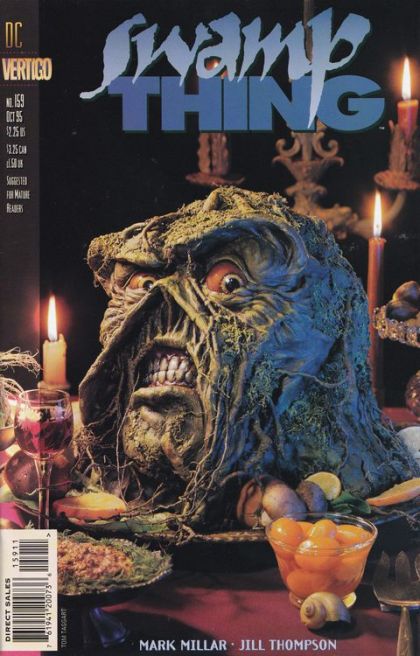 A young boy is kidnapped by a bizarre club whose members plan to make him the main course at their next dinner. But there are other dishes on the menu...including a generous portion of Swamp Thing. Written by Mark Millar, with guest art by Jill Thompson (THE INVISIBLES, THE SANDMAN). Cover by Tom Taggart. Suggested for Mature Readers. Mando Format. Cover price $2.25.