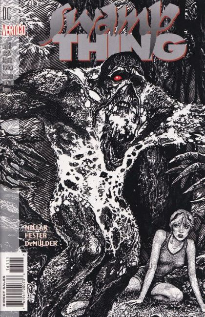 The 'Atmospheres' arc continues: As Swamp Thing and Abby experience an awkward reunion, a powerful force comes to Earth from Nightmaster's other-dimensional realm, determined to steal Swamp Thing's newly-acquired elemental abilities. Written by Mark Millar, with art by Phil Hester and Kim DeMulder. Cover by John Totleben. Suggested for Mature Readers. FC, 32pg Cover price $2.25.