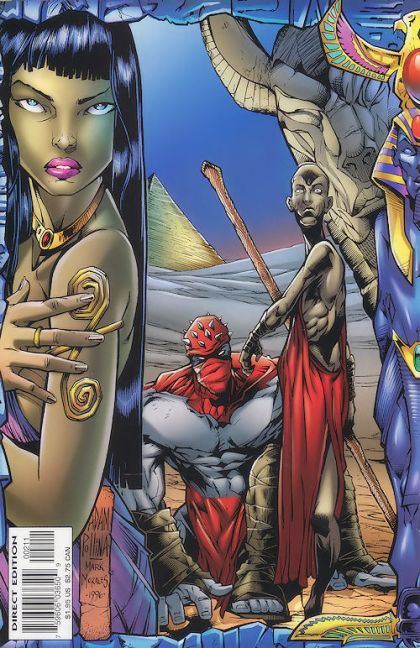 Cover by Adam Pollina and Mark Morales. Blood of the Father, script by Terry Kavanagh and James Felder, art by Adam Pollina and Mark Morales; En Sabah Nur and Baal get trapped in a cave-in; Baal tends to Nurs wounds, and they try to find their way out; Baal tells the origin of Rama-Tut; villains in the story include Rama Tut, Ozymandias, and Logos. 36 pgs., full color. $1.95. Cover price $1.95.