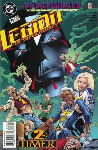 An Underworld Unleashed tie-in! 2-TIMER: Part 1 of 2. Continues in Legionnaires (1993) #32. XS, lost in time following the events of last month's crossover 'Future Tense,' becomes trapped in the 20th century. She is found by a Neron-empowered Chronos, who learns enough about Brainiac 5's temporal experiments to wage a battle in two eras. XS's adventure in the past picks up in Impulse (1995) #9.