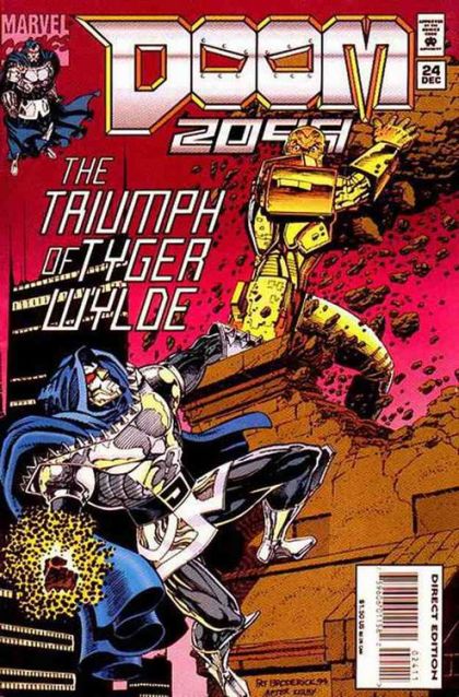 Written by John Francis Moore and Warren Ellis. Art by Pat Broderick and John Nyberg. Cover by Pat Broderick. The Triumph of Tyger Wylde; Dr. Doom embarks with Wire to a safeguard island consisted of some of his machinery and personal armory with a vengeful Tyger Wylde in pursuit to killing them both; Poet and Fortune mettle with a digitized angel and a rival of Dr. Doom's past entraps him in his own time portal. 36 pages, full color. $1.50. Cover price $1.50.