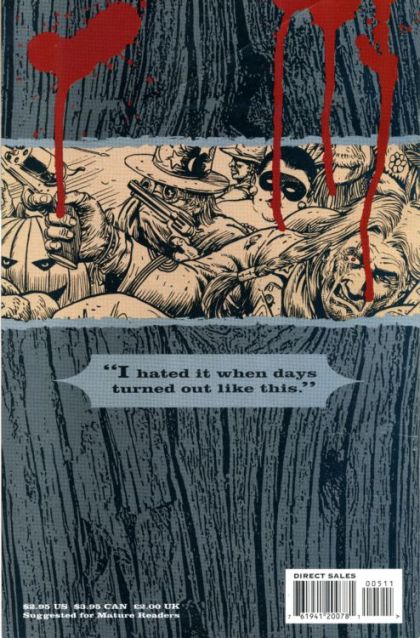 In the climax of this horrifying tale, Hex shoots it out with the zombie who was Wild Bill Hickok, and the fate of the Mojo Man and his travelling freak show is revealed. Written by Joe R. Lansdale, with art by Timothy Truman and Sam Glanzman, and full-process color by Sam Parsons. Painted cover by Truman. Suggested for Mature Readers. Deluxe Format. No ads. Cover price $2.95.