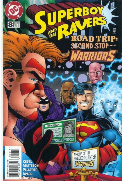 Road Trip: Part 2 of 3 - "The Romance of the Road!" Guest-starring Guy Gardner: Warrior. Story by Karl Kesel and Steve Mattsson. Art by Paul Pelletier and Dan Davis. The road trip continues as Superboy and the Ravers decide to pay a visit to Guy Gardner's bar. But when they get carded will the fun end before it's even began. Featuring cameos by Blue Beetle, Booster Gold, Firehawk, Blue Devil, Lead of the Metal Men, Two-Face, and Batman. 32 pages, FC Cover price $1.95.