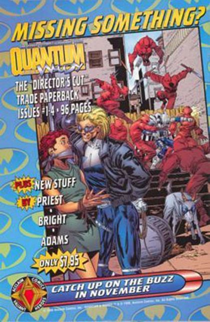 As a result of Calamity's chaos field at Zeus: Control (last issue), Quantum and Woody find themselves trapped in each other's bodies. Also, it's the beginning of Goat Month, and the goat finally gets a name -- just in time to go missing!