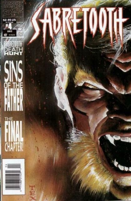 Painted cover art by Mark Texeira. Sins of the Fathers !, script by Larry Hama, art by Mark Texeira and Steve Biasi (Backgrounds); Sabretooth tracks down his son, Graydon, and throws him out of a window; a doctor removes the bomb from Sabretooths chest. X-Men The World's Coolest Superheroes Are Back In Action cartoon ad. 4-Issue Limited Series. 36 pgs. $2.95. Cover price $2.95.