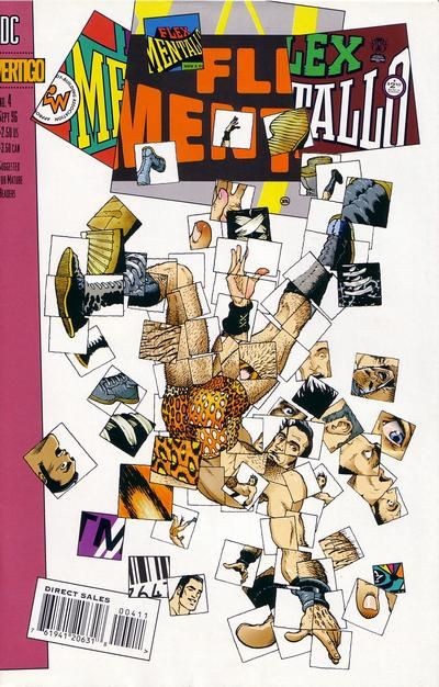 Cover by Frank Quitely. After the Fact, Part Four: We are all UFOs, script by Grant Morrison, art by Frank Quitely; The Man of Muscle Mystery survives his passage through the transporter tube, a baptism of blood that places him in the secret base of the Legion of Legions, there to meet the leader of Faculty X. And out of the endless chaos, the Singer's consciousness returns, where he finds himself in the most unexpected place. Flex Mentallo, Man of Muscle Mystery fictional history of the character by Grant Morrison. 36 pgs., full color. $2.50. Cover price $2.50.