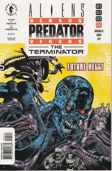 This is the cataclysmic, atom-smashing climax to end all climaxes, as Aliens, Predators, Terminators and humans collide...with all of the future as the prize! No one, no thing walks away from this one unscarred; after years (centuries, actually) of victimization and horror, will Ripley regain control of her life? She may come out on top of the Aliens, Predators, and Terminators, but don't bet on a "happy" ending!
