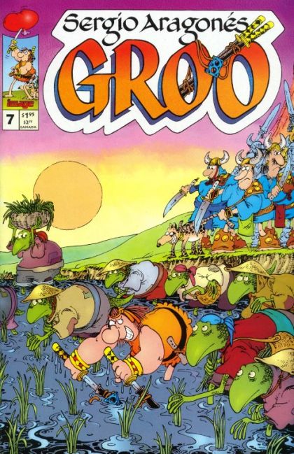 Sword and sorcery comedy from Sergio Aragones, as Groo's skill with the sword is only exceeded by his stupidity, making him dangerous to friend and foe alike. Groo discovers the inequality of economics when he tries to help immigrant workers get better wages. Also, Rufferto sees puppies with an uncanny resemblance to Rufferto.