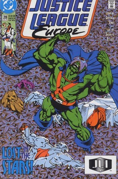 Part 3 of 3, continued from the previous issue. It's friend against friend (sort of!) as Captain Atom, Rocket Red and Metamorpho battle the rest of the JLE, now possessed by the tyrannical Starro the Conqueror. Guest-starring J'onn J'onzz, the Martian Manhunter. Written by Keith Giffen and Gerard Jones, with art by Bart Sears and Randy Elliott. Cover by Sears. Cover price $1.00