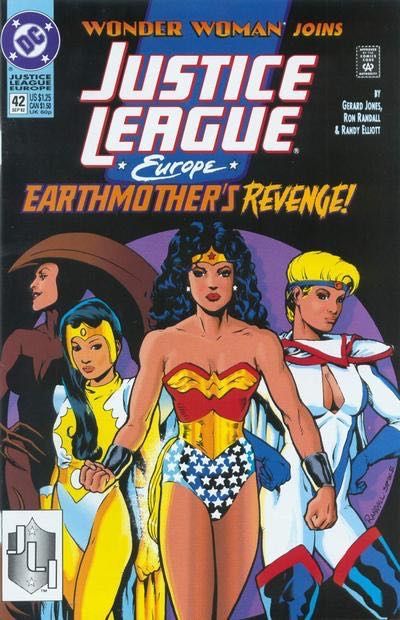 Power Girl faces her biggest personal challenge when the JLE journeys to the underworld of Greek mythology to try to stop the vengeful goddess Echidna from destroying mankind. Wonder Woman appearance. Written by Gerard Jones, with art by Ron Randall and Randy Elliott. Cover pencils by Randall. Cover price $1.25.