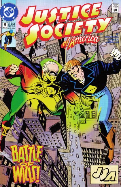 "Hearts of Darkness, Eyes of Hate!" The public and those close to the JSA turn against the team. Guy Gardner guest stars. Script by Len Strazewski, pencils by Mike Parobeck, inks by Mike Machlan. Cover by Mike Parobeck. Cover price $1.25.