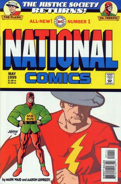 Hitler's influence is waning, and that means the effect of his artifact, the Spear of Destiny, is waning as well. It is possible for mystical heroes to enter Dresden without being corrupted by the Spear's power, which is good, because Stalker sent a disciple there. As Mister Terrific struggles to save civilians caught in the bombing, Flash takes on the disciple. But this disciple can absorb and redirect energy, especially the kinetic energy of Flash's superspeed punches! Flash next tries bombs, but these are equally ineffective. Mister Terrific tries to help the bombing victims, making sure resources are distributed fairly, when Nazi soldiers capture him. But he realizes one of them is actually Americommando. Americommando kills the real Nazi, and explains that there are no munitions plants in Dresden. Flash, meanwhile, deals with the disciple the only way he can: he sets his helmet to vibrate long enough to pass through the disciple's head, scrambling his thoughts. That buys him enough time to get the villain away from the city where, no longer able to control his power, he explodes! Mister Terrific has Flash take him to the military headquarters. He's enraged that they are bombing Dresden "just to make a point". The general in charge doesn't like it either, but it's about taking potential soldiers away from the Nazi forces. Bitter, Mister Terrific tears the "Fair Play" logo from his suit; the world isn't fair and now he realizes it. But Flash counters: maybe he can be an example. Slowly, Mister Terrific picks up his symbol. That's when Doctor Occult whisks them through a portal; Stalker's plans proceed...