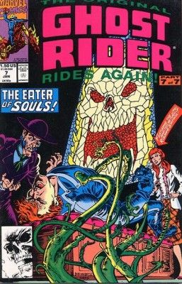 Reprints Ghost Rider 80 and 81. Cover pencils by Bob Budiansky, inks by Dave Simons. "Stained Glass and Shadows!", script by J. M. DeMatteis and Bob Budiansky (co-plotter), pencils by Bob Budiansky, inks by Kevin Dzuban; Centurious returns to claim the soul of the Ghost Rider. Ghost Rider #81 cover reprint, pencils by Bob Budiansky, inks by Dave Simons. "The End of the Ghost Rider," script by J. M. DeMatteis, pencils by Bob Budiansky, inks by Danny Bulanadi and Kevin Dzuban; Johnny Blaze is trapped in a soul gem and Zarathos takes over his body to fight the nefarious Centurious; During the battle, Zarathos and Centurious are trapped in the gem and Johnny Blaze is wholly human once again and faces a hopeful future. 52 pgs., full color. Cover price $1.50.