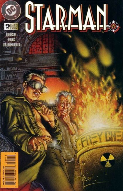 Cover by Tony Harris. Shards, script by James Robinson, art by Tony Harris and Wade von Grawbadger. Freeing the alien ex-Starman from the carnival, Jack Knight brings the former captive to his father for safekeeping. Meanwhile, the Mist's daughter breaks out of prison, and the Shade learns that a mysterious killer is causing the citizens of Opal City to disappear, one by one. From the Shade's Journal text story by James Robinson. The Shade writes about the original Starman's first appearances.