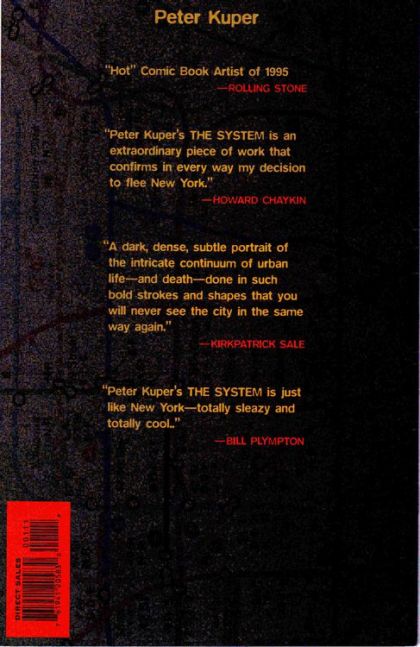 From the subway system to the solar system, human lives are linked by an endless array of interconnecting threads. If every action has an equal and opposite reaction, get ready to run for cover: A sleazy stock broker is lining his pockets. A corrupt cop is shaking down drug-dealers. A mercenary bomber is setting the timer. A serial killer is slaughtering strippers. A political scandal is about to explode. The planet's burning. And nobody's talking. This wordless 3-issue miniseries is written and fully painted by the award-winning and critically acclaimed Peter Kuper. No ads. Mature Readers. FC, 32 pg. Rebax Format. Cover price $2.95.