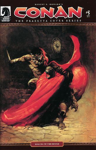 CONAN: THE FRAZETTA COVER SERIES #5 Timothy Truman (W), Cary Nord (P), Tom?s Giorello (P), Richard Isanove (C), and Dave Stewart (C) On sale July 28 FC, 72 pages $6.99 Miniseries The fifth installment in Conan: The Frazetta Cover Series features both Frank Frazetta's tense, dramatic Man-Ape painting and an adaptation of Robert E. Howard's 'Rogues in the House'-as interpreted by Timothy Truman, artists Cary Nord and Tom?s Giorello, and colorist Richard Isanove. A longtime Howard favorite, this seminal Conan story first appeared in Weird Tales in 1934, and Frazetta's Man-Ape piece is one of his few Conan paintings to make a direct reference to one of Howard's works. Our favorite barbarian has been living as a thief for some time, and his crimes are catching up with him. Becoming enmeshed in the plans of a treacherous nobleman and a dark priest, Conan finds himself making some strange allies in order to free himself from the labyrinthine, booby-trapped halls in the Red Priest's stronghold. Stalked by a mysterious, hulking horror that's grown out of control, Conan and the nobleman make a wary alliance with the Red Priest himself! Cover art by Frank Frazetta!